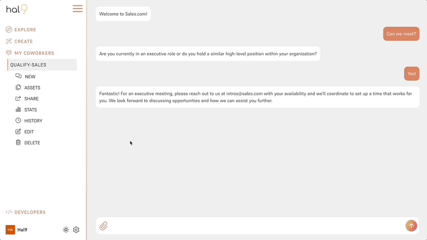 Pay only for each second Hal9 "thinks." For example, when using a chatbot or API, you pay solely for the time it takes to respond. Technically, you pay only when your backend code runs.